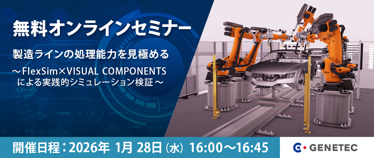 本セミナーでは、製品の投入量や設備の稼働条件を変えたときの処理能力の限界点を3Dシミュレーションソフトで見える化し、ボトルネック工程を特定、改善策を検証する方法をご紹介します。